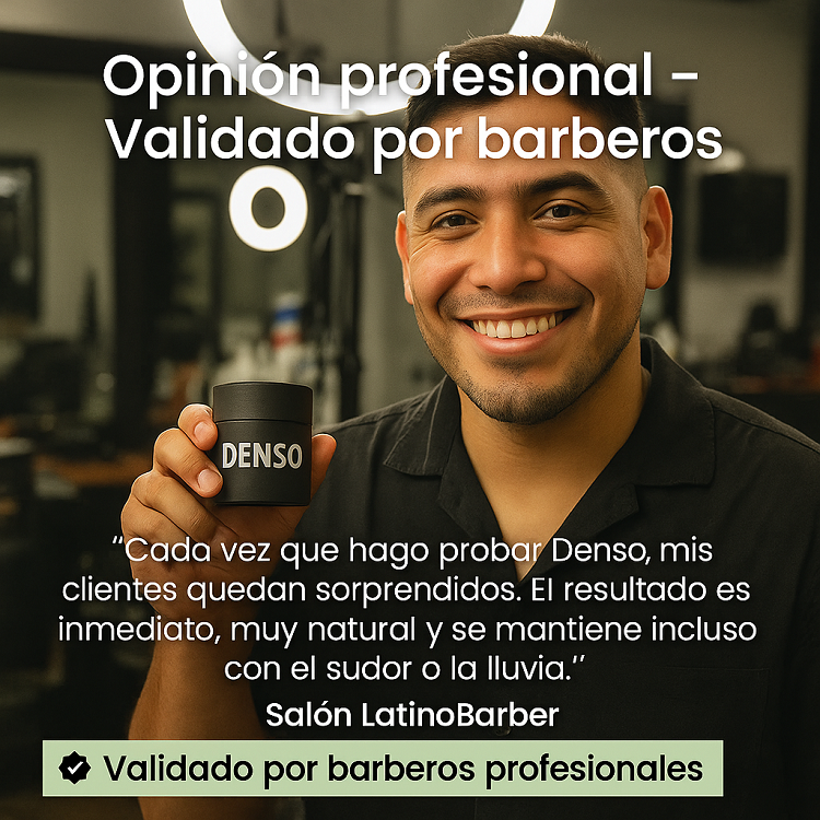No solo los clientes confían en Denso, también los barberos profesionales lo eligen en sus salones. Gracias a su aplicación rápida y resultados inmediatos, lo utilizan para dar a sus clientes un aspecto más denso y natural en cuestión de segundos.