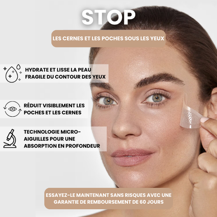 "Je n’en pouvais plus de mes cernes et poches qui me donnaient l’air fatiguée, même après une bonne nuit de sommeil. Avec ces patchs, le changement a été bluffant : mon regard est devenu plus clair, plus lumineux… et j’ai enfin retrouvé confiance en moi. Tout ça sans crème compliquée ni injection douloureuse. Je le recommande à toutes celles qui veulent se voir transformées en un clin d’œil !"