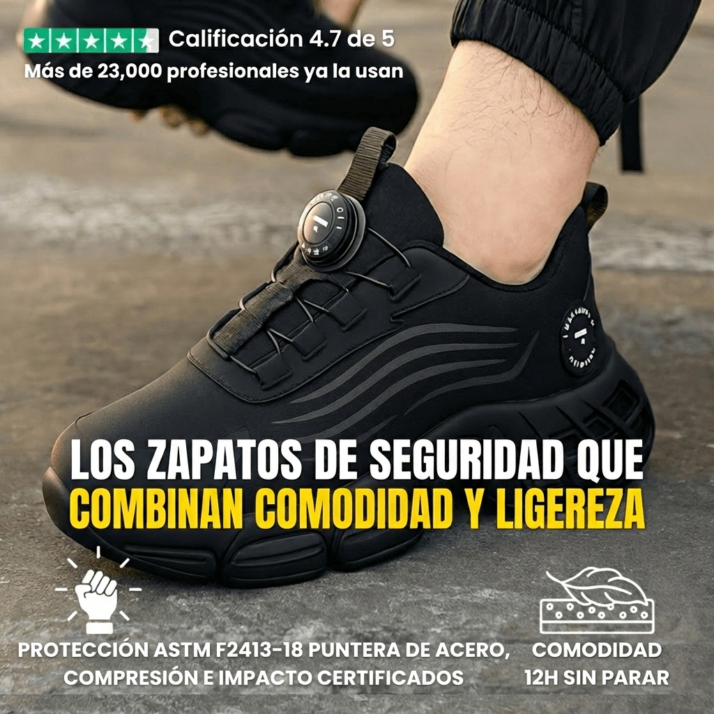 Nuestras sneakers son 45% más ligeras que el calzado de seguridad tradicional, manteniendo el mismo nivel de protección certificado bajo ASTM F2413.
